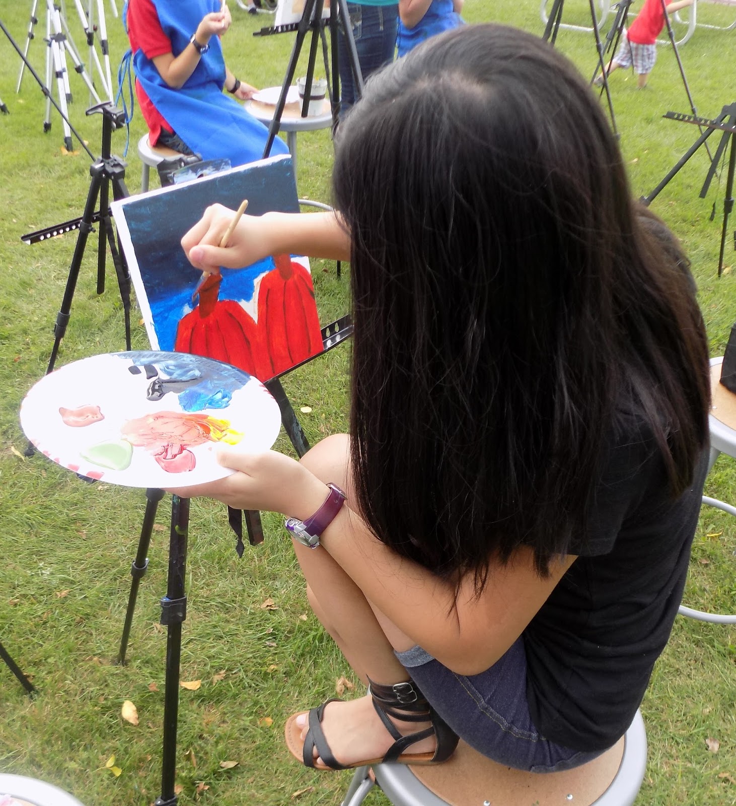 Below: Olivia painting outdoors at an art event (September 2016).
