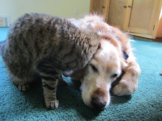 As I was thinking about Lucy, I looked at the books at the library and found some that dealt with pet loss. There was one that was a children's book that I thought may be helpful for Olivia, since it was she who found Lucy when he had collapsed in the next room from where she was sitting. She came in to get me - panicked - and then we went back to see what was going on. Olivia pulled Lucy out from behind the nightstand, where he had collapsed (we think he had a heart attack).