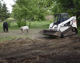 Afterwards, he smoothed out the area where the horses spend a lot of time. They didn't seem to mind the Bobcat moving around the pasture.